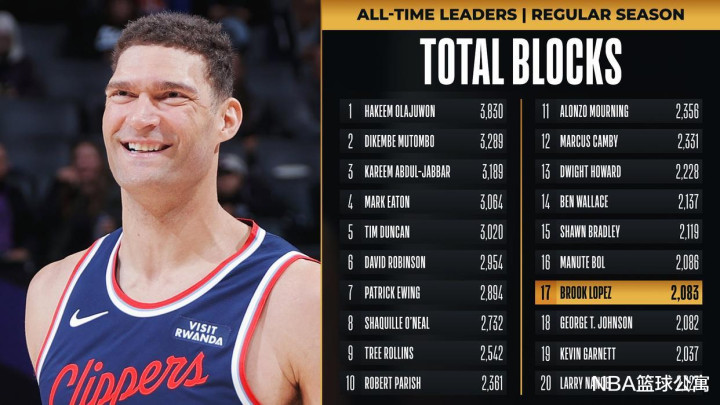 第3、大洛此战送出2次盖帽,生涯盖帽数2083次,超越乔治·T·约翰逊升至历史第17位,距离16位的马努特波尔也仅差3次。